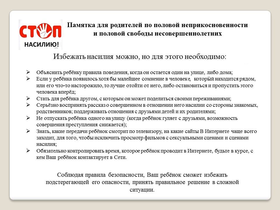 Буклет.Половая неприкосновенность несовершеннолетних.
